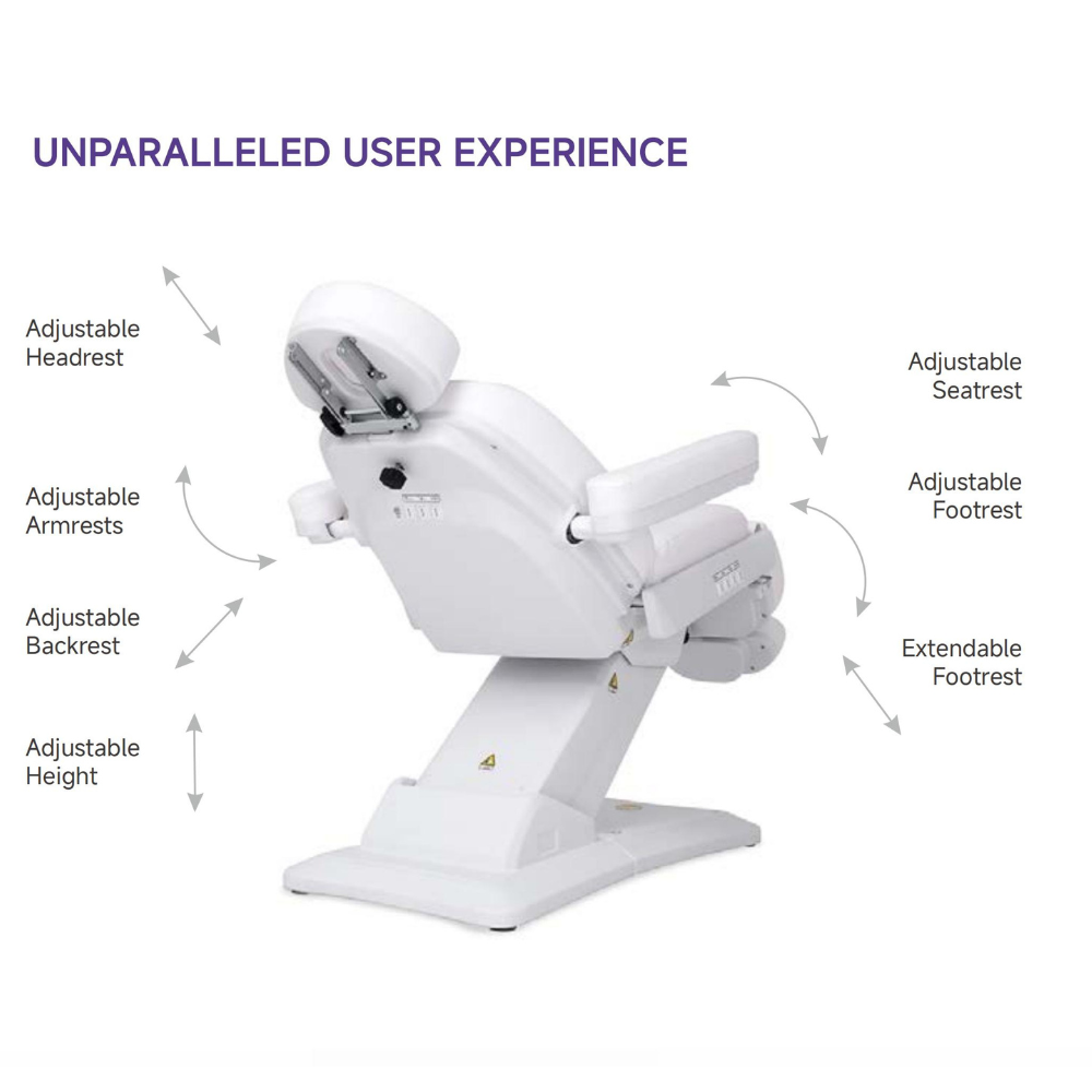 From facials to medical treatments, this chair delivers. The 4 motors operate smoothly, and the memory settings save time when working with repeat treatments. The paper roll holder and leg PVC cover are added bonuses. Couldn’t be happier with this chair!