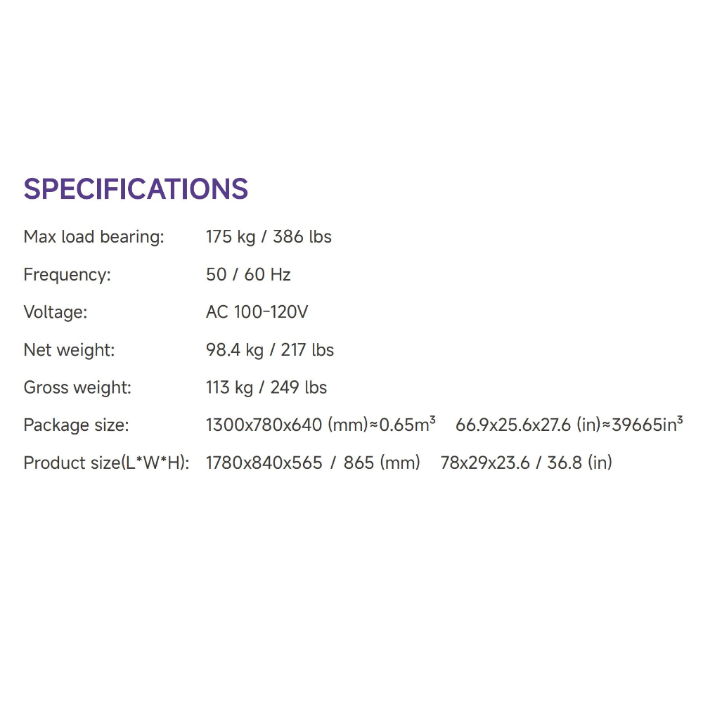 • Product Dimensions (LWH): 1780×840×565 / 965 mm (78×29.2×36.6 in)